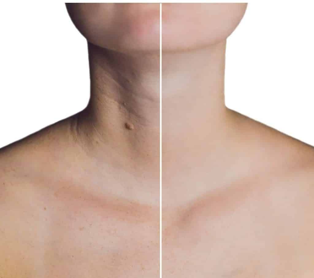 فيما تقول دكتورة مهسا سلقي، مؤسسة شركة SAS Aesthetics في لندن، إن علاج الرقبة يعتمد على توزيع الأنسجة الدهنية: “فإذا كان المريض لديه ذقن مزدوجة، يتم إذابة الدهون أولاً بـ 3-6 جلسات تليها شد الجلد بـ1-3 جلسات [جهاز] مورفيوس 8″، وهو عبارة عن جهاز يجمع بين الوخز بالإبر الدقيقة وتقنية الترددات الراديوية لإعادة التسطيح الجزئي الذي يحفز إنتاج الكولاجين، وبالتالي يمكنه إذابة الدهون التي غالبًا ما توفر دعمًا هيكليًا للجلد.
