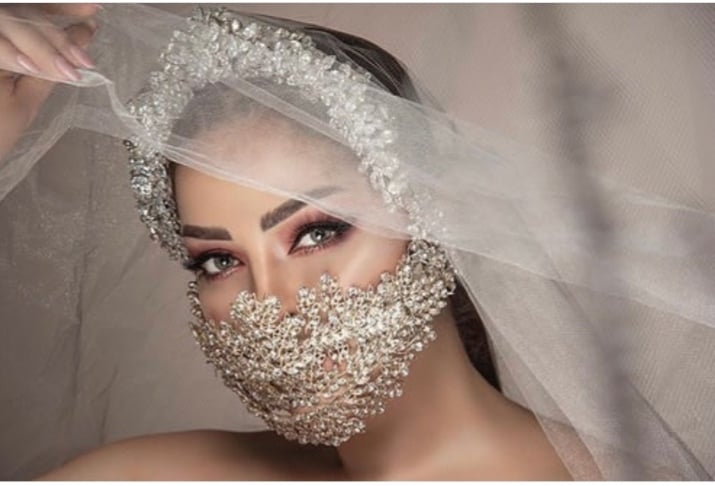 أصبحت الكمامة هذا العام جزء من الموضة وسترافقنا كقطعة اكسسوار أساسية مع أزيائنا. وأصبحت جزء خلال أزمة كورونا جزء من طلة العروس.