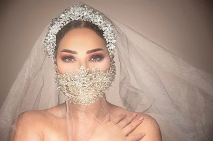 ومن جلسة تصوير مع زين كرزون شقيقة النجمة ديانا كرزون، شاهدوا جمال كمامة العروس من تصميم عامر عطا