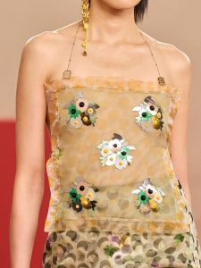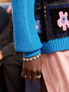 – Baguette الأيقونية عادت بأشكال غير متوقعة: زهور ثلاثية الأبعاد، كابلات حريرية، وترتر لامع، وكأنها تهمس للمرأة التي تلمع من الداخل.