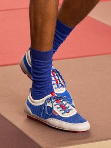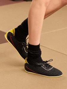 – بعض التصاميم استعارت من الرياضة والباروك، فظهرت أحذية جلدية مزينة بأزهار بلاستيكية أو تفاصيل معدنية دقيقة، وكأنها تقول إن القدم تستحق أن تُحتفل بها.