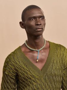 – الأقراط والقلائد جاءت بتقنية Tubogas، وهي تقنية مفصلية تسمح بالحركة والانسياب، مزينة بزركونيات وأحجار زجاجية.