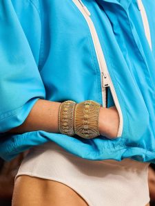 – بعض الحقائب جاءت منسوجة من الرافيا أو مزينة بزخارف نارية، استغرقت صناعتها أكثر من 40 ساعة، في تجسيد حرفي للفخامة البطيئة.