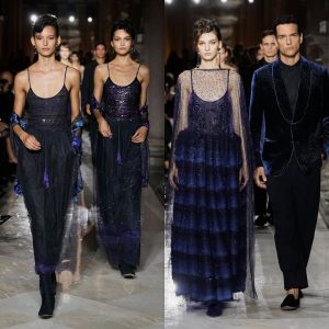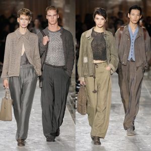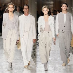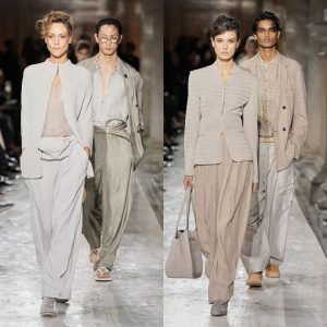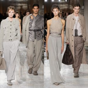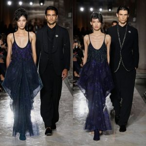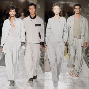 المجموعة حملت توقيعًا بصريًا وفيًا لأسلوب أرماني: الألوان الهادئة، القصّات الانسيابية، والخامات الفاخرة كالحرير والكتان. الفساتين جاءت بسيطة لكنها مشغولة بدقة، والبدلات الرجالية حافظت على أناقتها الصامتة التي لطالما ميّزت الدار.