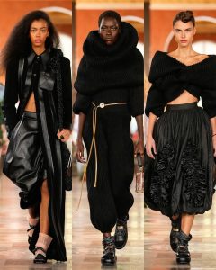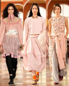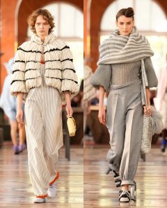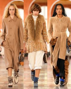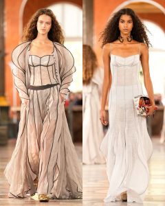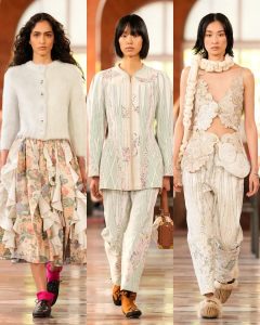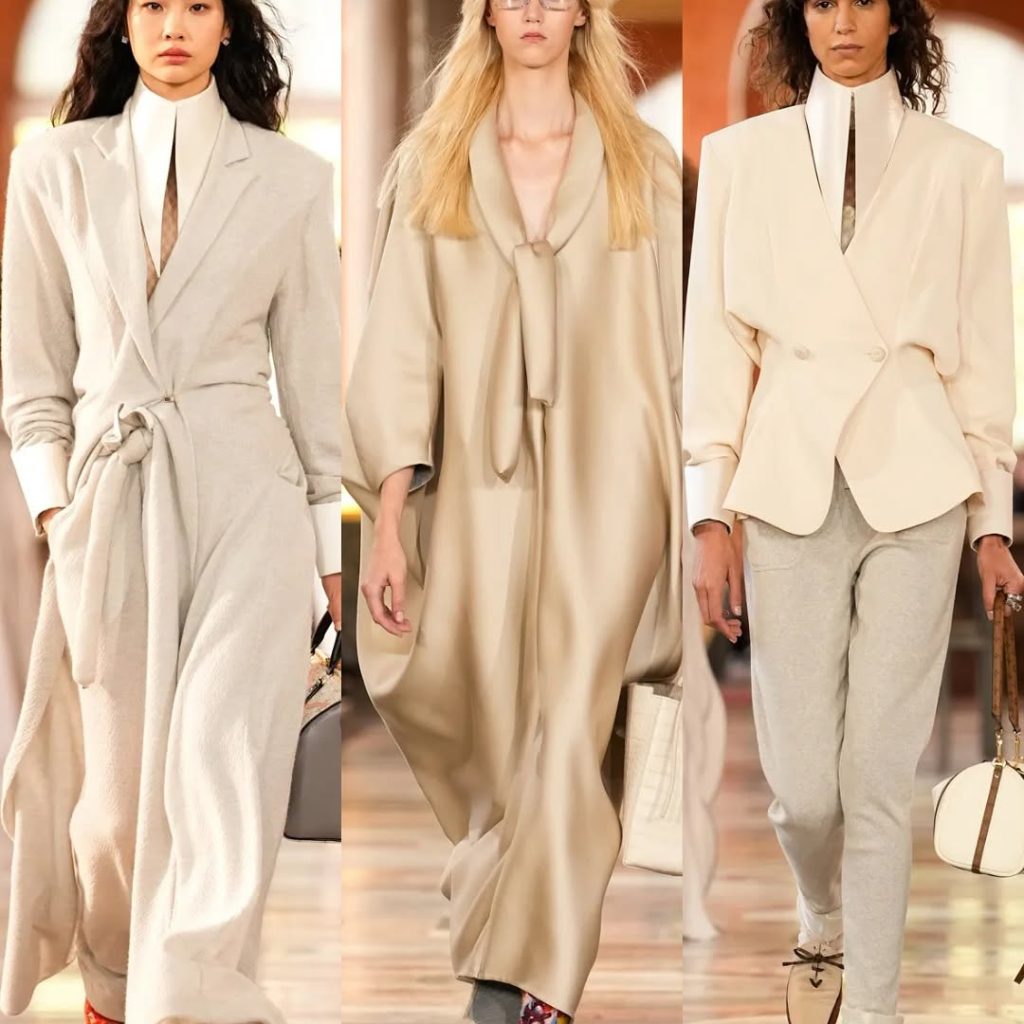 – القصّات جاءت متعددة الطبقات، كأنها تحاكي السفر بين العصور: سترات قصيرة فوق فساتين طويلة، أكمام قابلة للفصل، وتفاصيل مستوحاة من أزياء الفرسان والرحّالة.