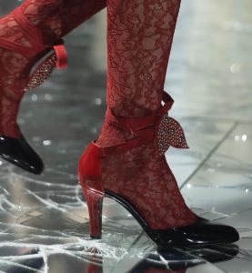 – كعوب شفافة كأنها لا تنتمي للأرض، وأخرى معدنية تعكس الضوء كأنها مرآة مشروخة.