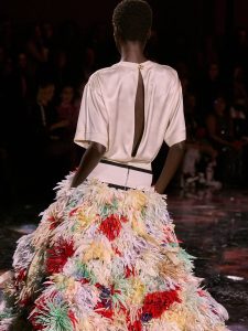 – ظهرت فساتين شفافة، سترات منحوتة، وتنانير مطرّزة، في توازن بين الأنوثة الكلاسيكية والحداثة المفككة.