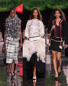 – Blazy أعاد تفسير رموز Chanel مثل التويد، اللؤلؤ، والسترات القصيرة، لكن بأسلوب طبقي ومعماري، حيث كل قطعة بدت كأنها طبقة من الذاكرة تُعاد تشكيلها.