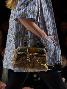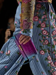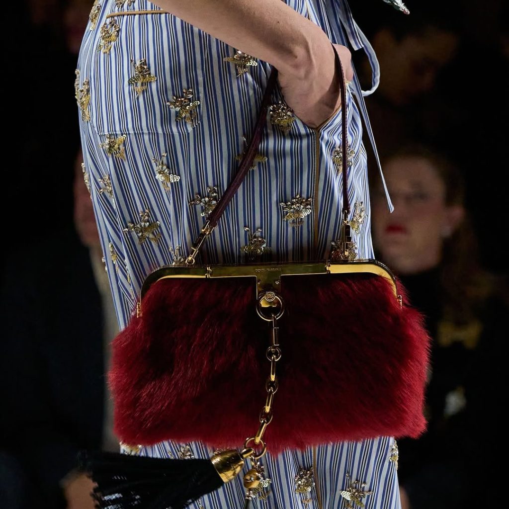 – حقائب صغيرة مزخرفة: ظهرت حقائب يد مصغّرة مرصّعة بالخرز، الدانتيل، أو الزهور ثلاثية الأبعاد، في تحية لأسلوب Alta Moda الفاخر.