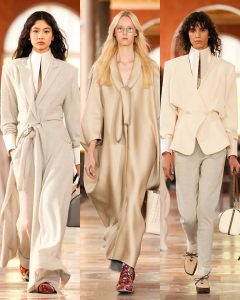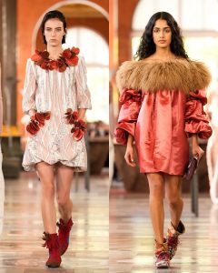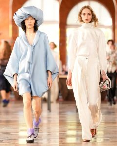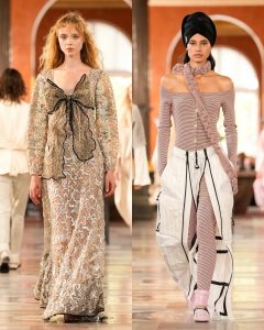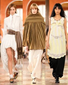 – القصّات جاءت متعددة الطبقات، كأنها تحاكي السفر بين العصور: سترات قصيرة فوق فساتين طويلة، أكمام قابلة للفصل، وتفاصيل مستوحاة من أزياء الفرسان والرحّالة.