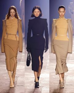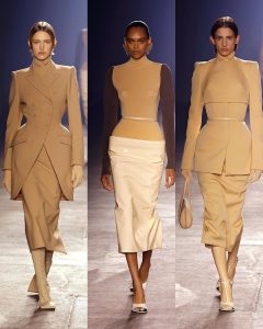 – المجموعة احتفت بـالهيكلية النحتية: أكتاف مبالغ بها، قصّات دقيقة، وخطوط حادة تبرز منحنيات الجسد كأنها منحوتة.