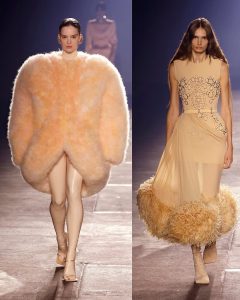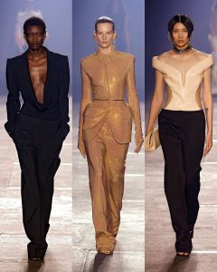 – ظهرت القصّات الجريئة والفتحات المبالغ بها، مع صدور منحوتة تبرز من تحت أقمشة شفافة، في تحدٍ مباشر للمعايير التقليدية للجمال والستر.