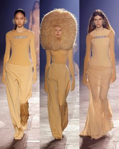 في هذا العرض، لم يكن Mugler يصمّم للمرأة التي تريد أن تُعجب، بل لتلك التي تفرض حضورها، وتعيد تعريف جسدها كمنصة فنية.