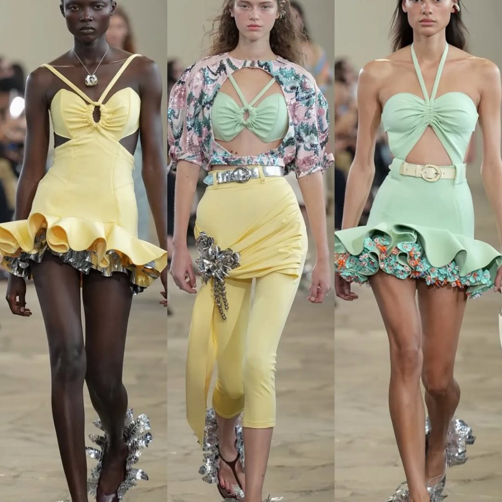 في هذا العرض، Rabanne لم يقدّم مجرد أزياء صيفية، بل قدّم حالة من التحرر الفني: أن تلبس المرأة البحر، لا لتسبح فيه، بل لتعيد رسمه على جسدها.