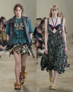 لكن خلف هذا البريق، كانت هناك حكاية عن التمزق والتجميع: بعض القطع بدت كأنها مفككة ثم أعيد تركيبها، وكأن المصمم يقول إن الجمال لا يأتي من الكمال، بل من الحركة، من التغيير، من إعادة تشكيل الذات.